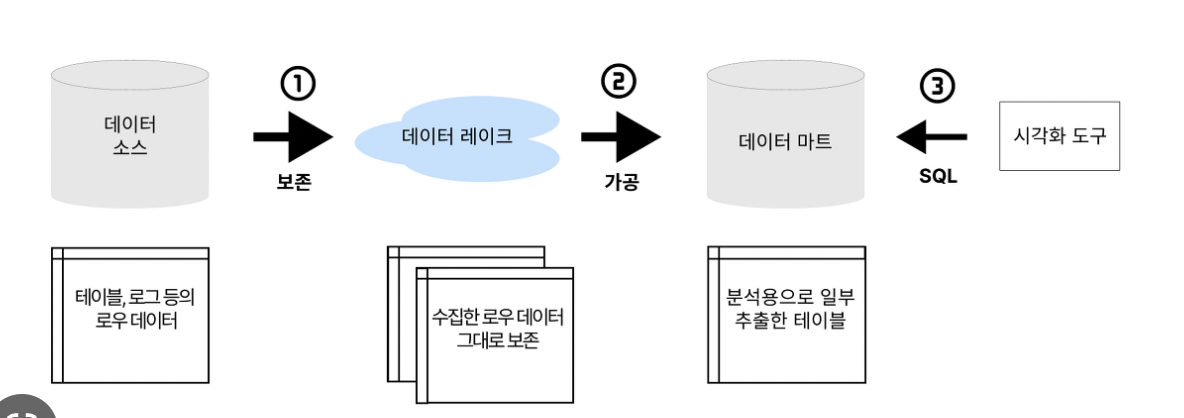 빅데이터 시대엔 모든 데이터를 원래의 형태로 축적해두고 나중에 그것을 필요에 따라 가공하는 구조가 필요하다. 이 때 모든 데이터를 축적하는 호수를 뜻하는 용어로 데이터 레이크란 단어가 탄생했다.
