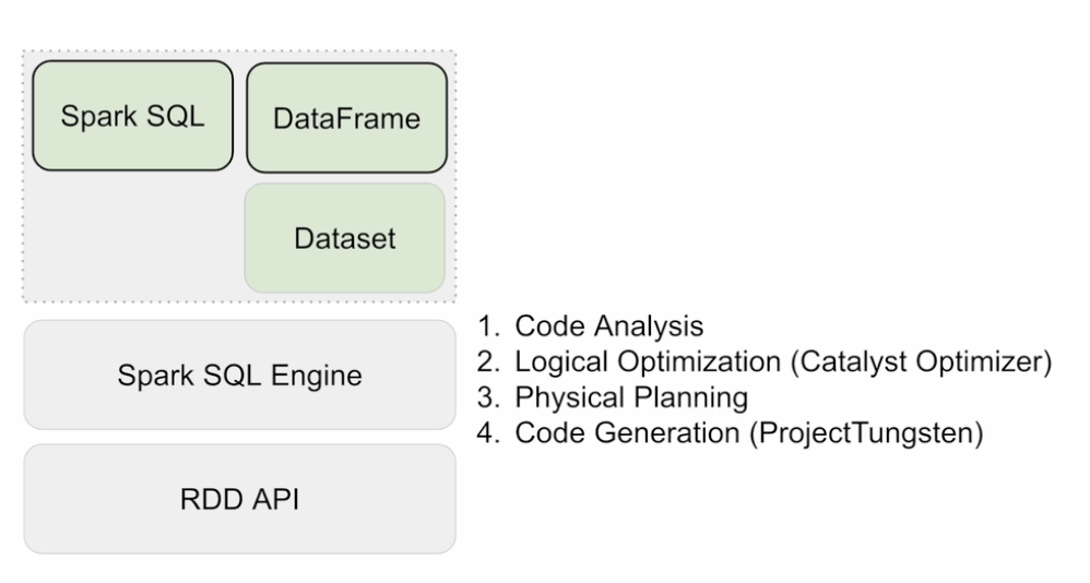 - RDD 위에 만들어지는 RDD와는 달리 필드 정보를 갖고 있음 (테이블)