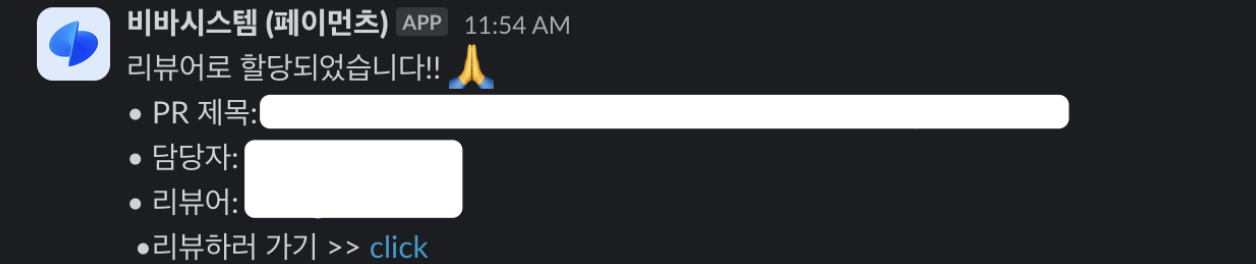 리뷰어가 되면 Github이 메일로 알림을 보내는데 이메일을 자주 확인하지 않으면 본인이 리뷰어인 것을 인지하기 어려웠다. 그래서 슬랙봇으로 리뷰어가 되었다는 메시지를 보내는 기능을 추가했다.